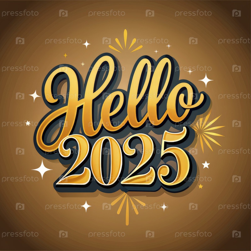 Стильный дизайн типографии hello, празднующий приход 2025 года