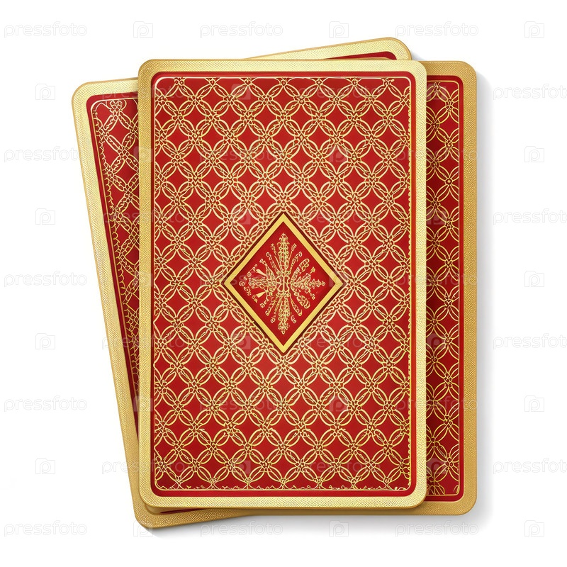 Дека игровых карт с красными рисунками на спине, аккуратно расположенных лицом вниз на столе, готовом к игре