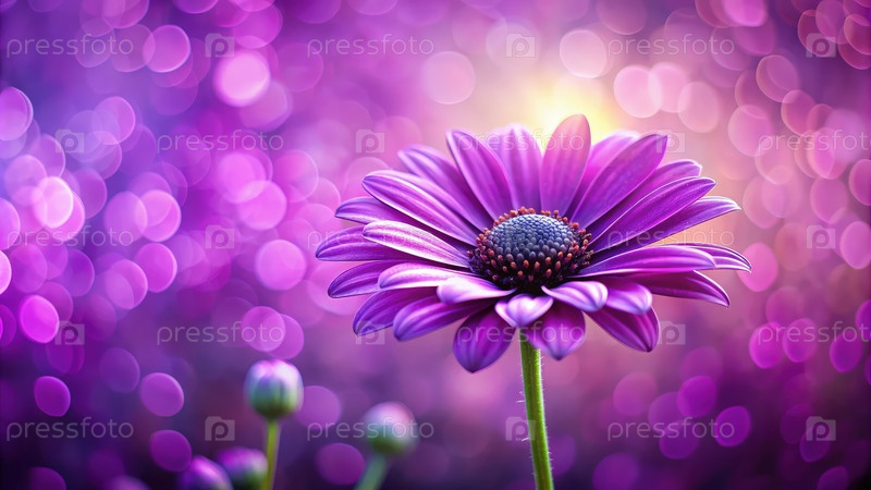 Один фиолетовый цветок стоит высоко на фоне размытия лавандовых оттенков, захватывая сущность спокойного сада в теплый весенний день