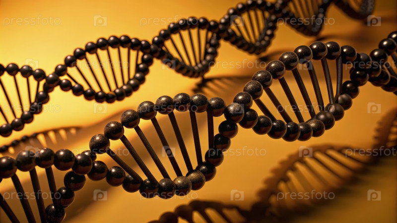Близкий взгляд на модель двойной спирали ДНК на теплом фоне, демонстрирующий сложную структуру генетического материала