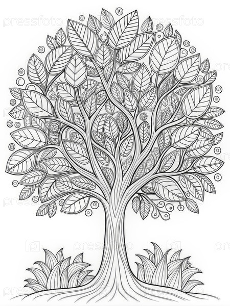 Сложная страница для раскраски деревьев с подробными листьями и органическими узорами для творческого наслаждения