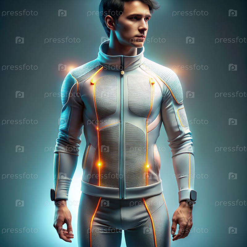 Казуальный спортсмен, носящий футуристическое снаряжение для тренировок в студии