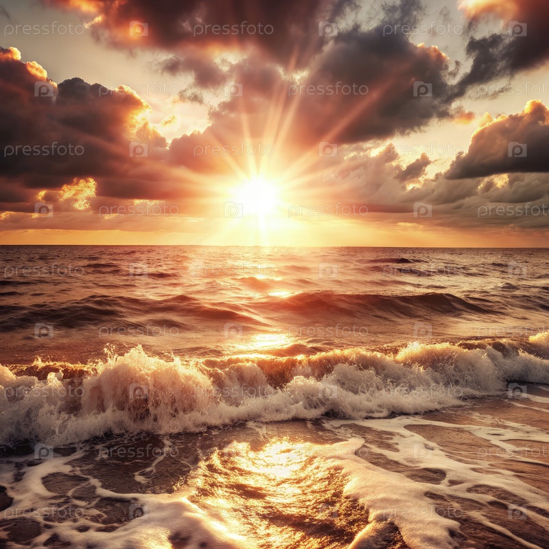 Спокойное море на рассвете с первыми лучами солнечного света после шторма