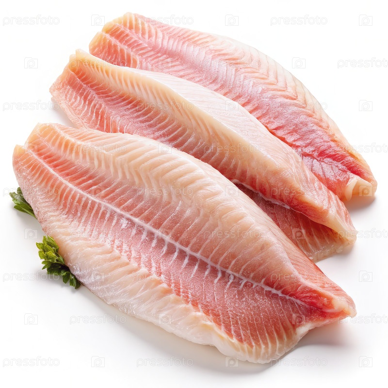 Свежие карповые филе, представленные на чистом белом фоне идеально подходят для кулинарных приготовлений и здоровых вариантов питания в любое время года