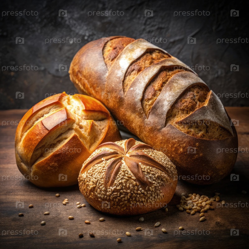 Свежевыпеченный ремесленный хлеб на темной деревянной поверхности с рустикным фоном