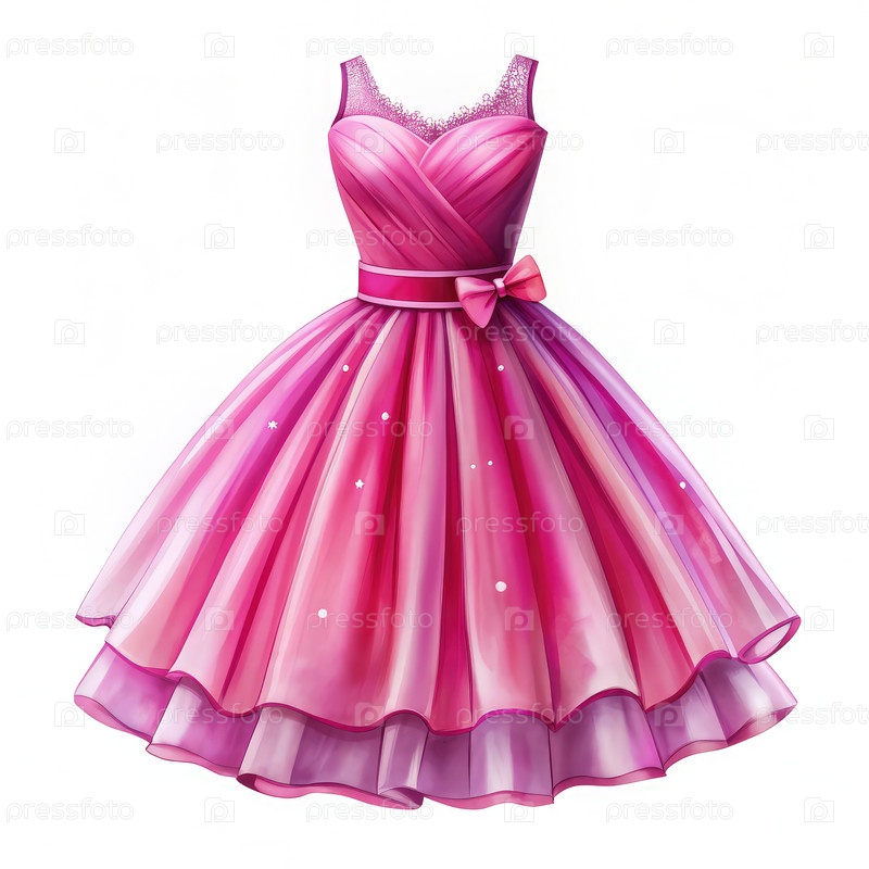 Уникальная иллюстрация ярко-розового платья, предназначенного для куклы