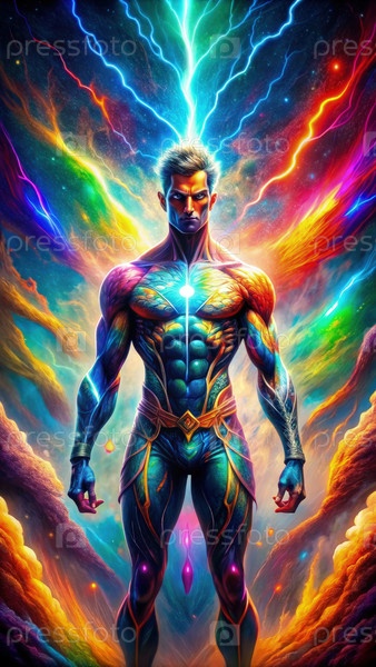 Космическая калейдоскопическая буря, раскрывающая величественные цвета и энергетические силы в потустороннем ландшафте