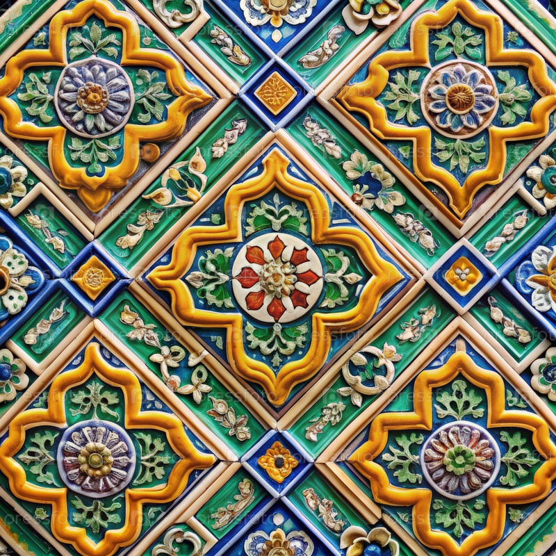 Замысловатый китайский шаблон оттенков с яркими плитками с цветочными и геометрическими узорами в традиционном макете из плит в декоративном стиле