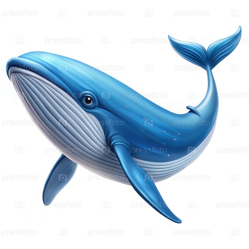 Величественный голубой кит, грациозно плавающий в океане на белом фоне