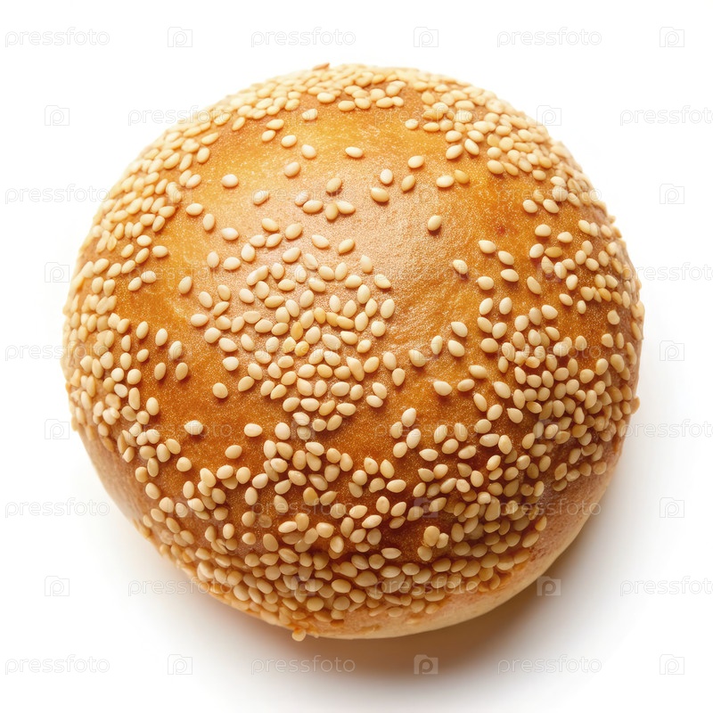 Вкусная золотая булочка с семенами кунжута, отображаемая сверху на чистом белом фоне, идеально подходит для бутербродов или блюд