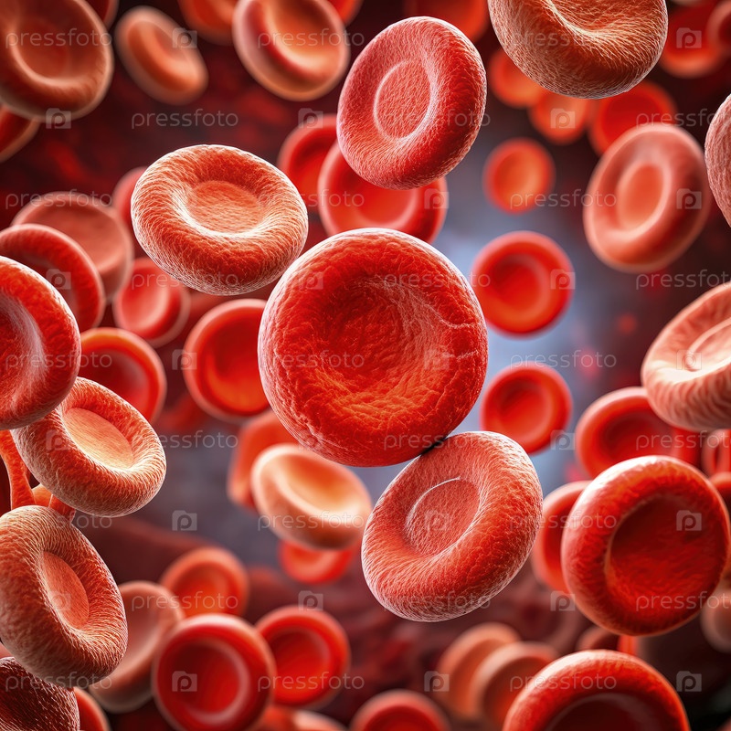 Подробный взгляд на красные кровяные клетки в микроскопии по стандартной рентгеновской шкале во время лабораторного анализа