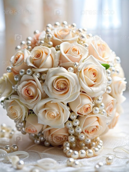 Элегантный свадебный букет кремовых роз и жемчужин для мечтательного брачного внешнего вида