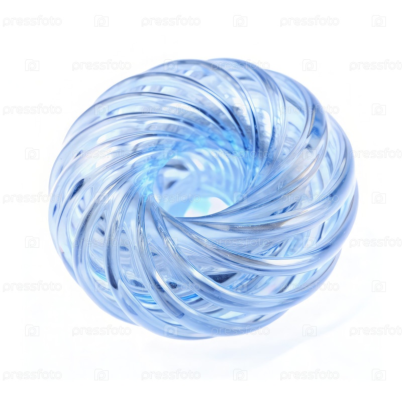 Абстрактная скульптура из голубого стекла, содержащая искривленные нити и центральную пустоту, демонстрирует сложное мастерство