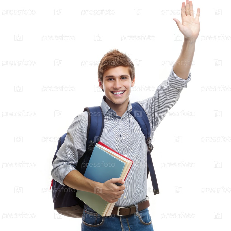 Счастливый студент, размахивающий прощанием в конце семестра за пределами школы