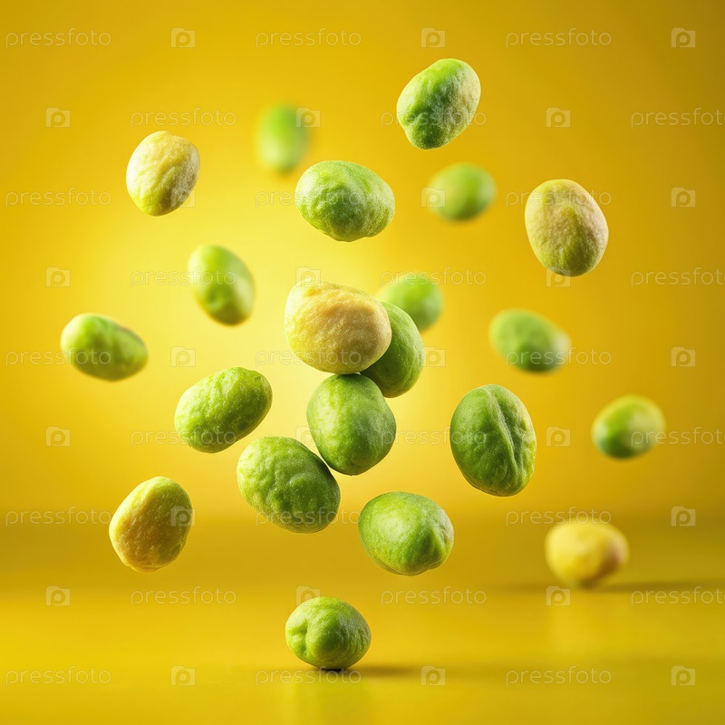 Плавучие бобы васаби распространяют яркую энергию на светло-желтом фоне