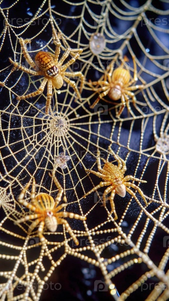 Сложные паутины, сверкающие росой на рассвете, демонстрируют тонкое мастерство арахнидов в спокойной лесной обстановке