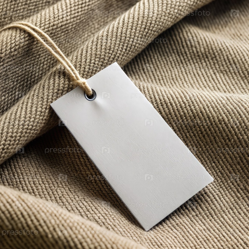 Пустой тканевой тег, прикрепленный к мягкой ткани, опирающейся на текстурированную поверхность