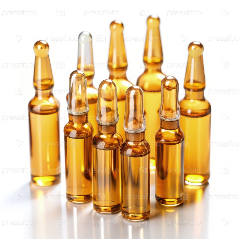 Ампулы, содержащие питьевые растворы для олиготерапии на прозрачном фоне
