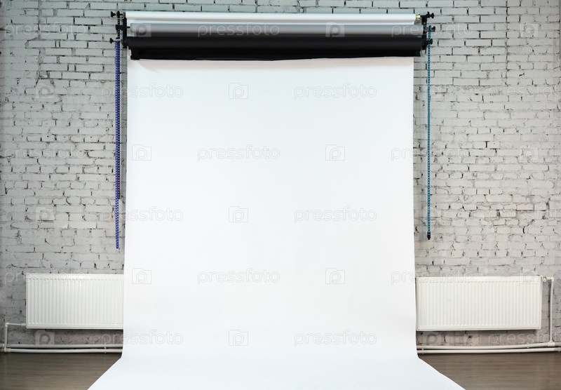 Белый фон на белой кирпичной стене внутри студии, принадлежащей