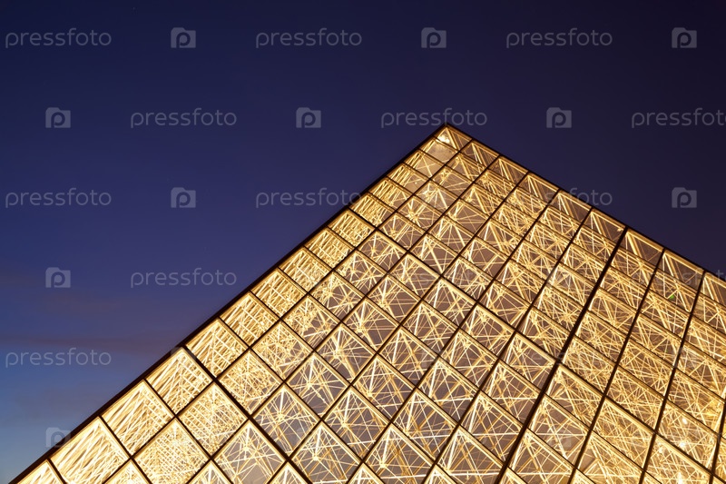 ПАРИЖ - 1 января: Близкий план верхней части освещенной пирамиды Лувра на