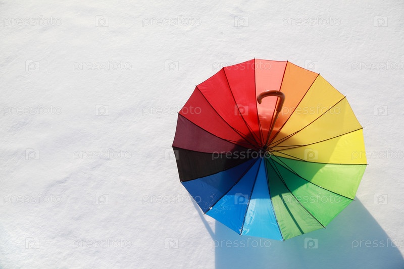 Радужный зонтик опирается на заснеженную землю