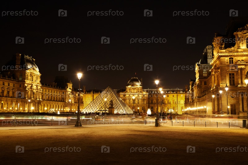 Париж - 1 января: площадь с пирамидой и конной статуей