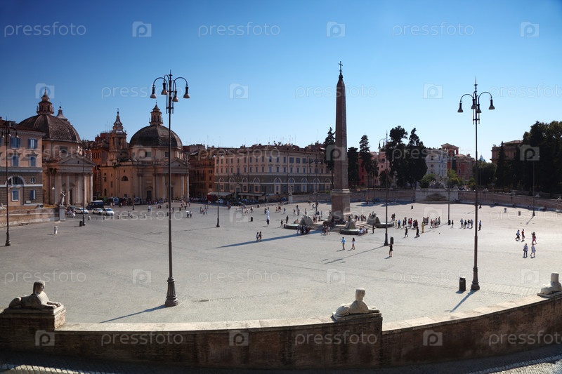 Люди проходят рядом с обелиском на площади Пьяцца-дель-Пополо в Риме, Италия