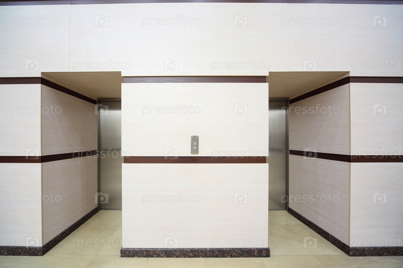 Минималистическое лифтовое лобби с кремовыми и коричневыми панелями