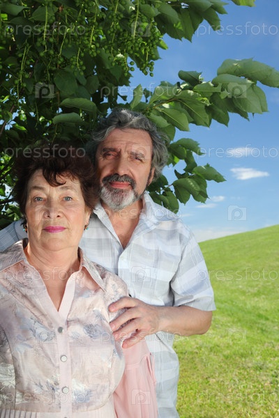 Мужчина и женщина стоят под зелеными деревьями