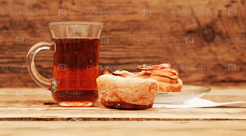 Яблочные кексы с цветами и чашка чая