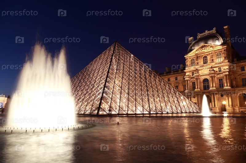 Париж - 1 января: пирамида Лувра и павильон Ришелье в