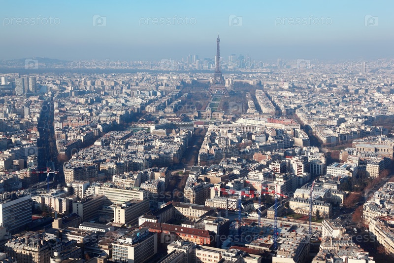 Панорама Парижа с Эйфелевой башней зимой, широкоугольный вид, Франция