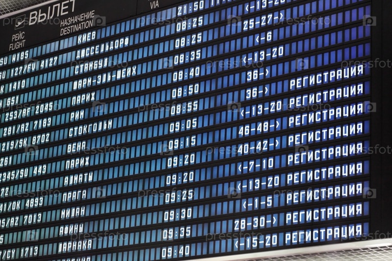 Цифровая доска отправления аэропорта отображает информацию о полете