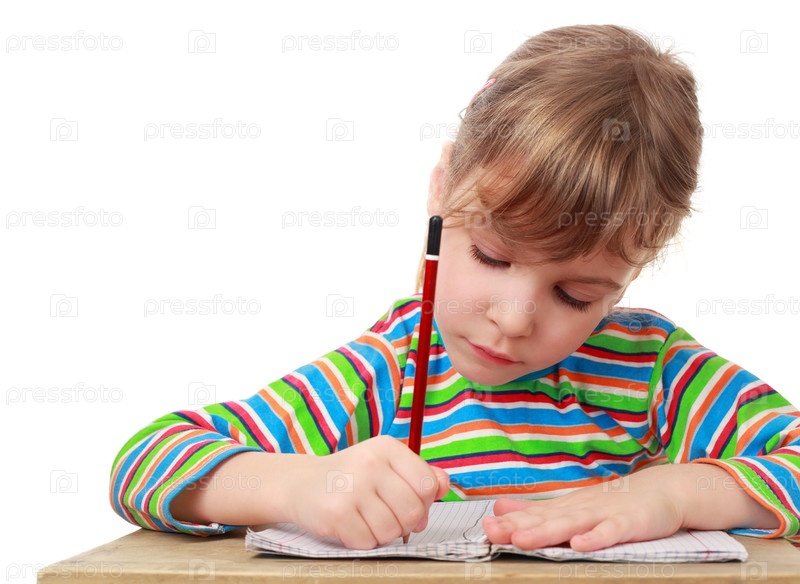 Ребенок пишет карандашом на облицованной бумаге
