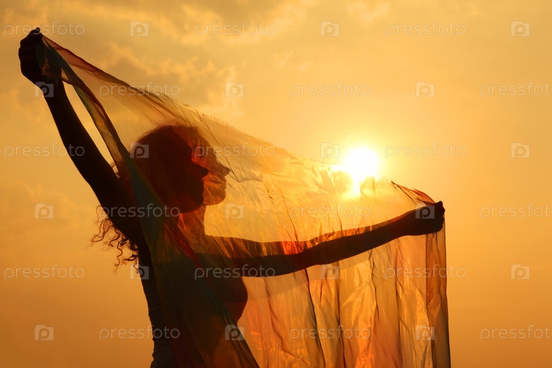 Силуэт человека, держащего чистую ткань на закате