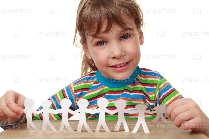 Ребенок улыбается, держа в руках людей с бумажной цепью