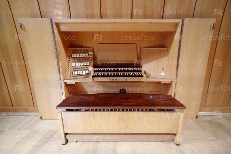 Детали деревянной панели управления массивного трубного органа; клавиши и переключатели