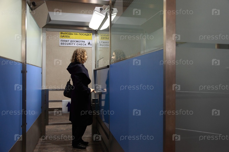 Молодая женщина стоит на контрольно-пропускном пункте в аэропорту