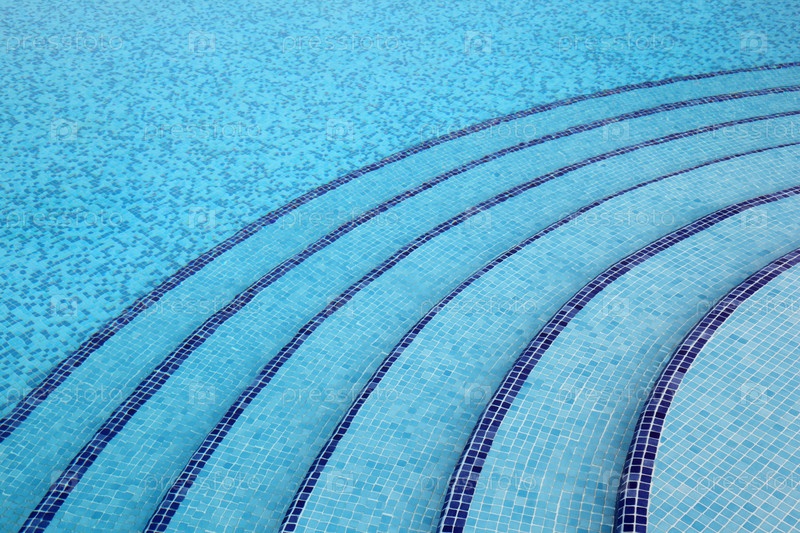 Спокойная вода бассейна медленно течет по изогнутым лестницам из черепицы