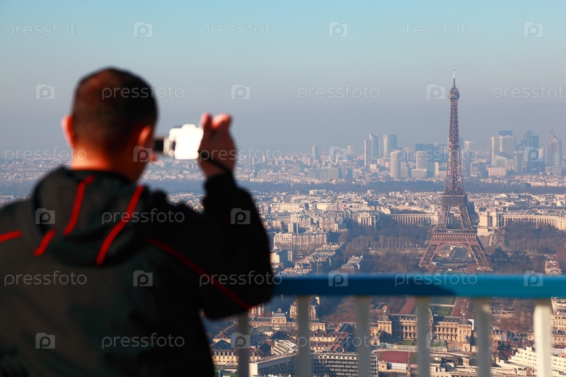 ПАРИЖ - 4 января: Человек фотографирует панораму Парижа с Эйфелем
