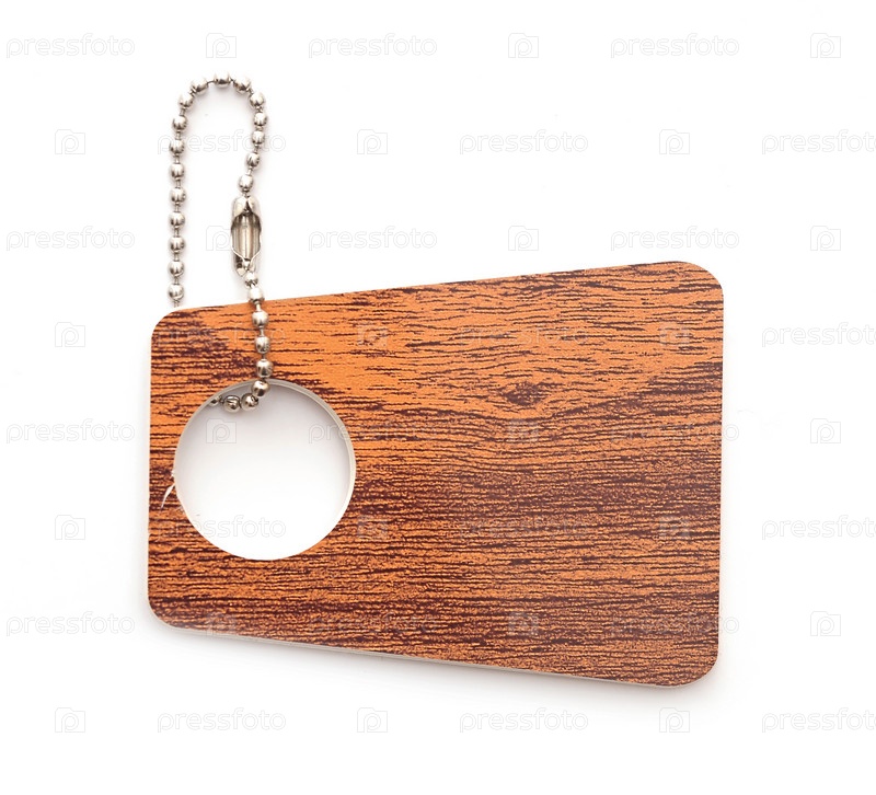 Деревянный брелок, изолированный на белом фоне