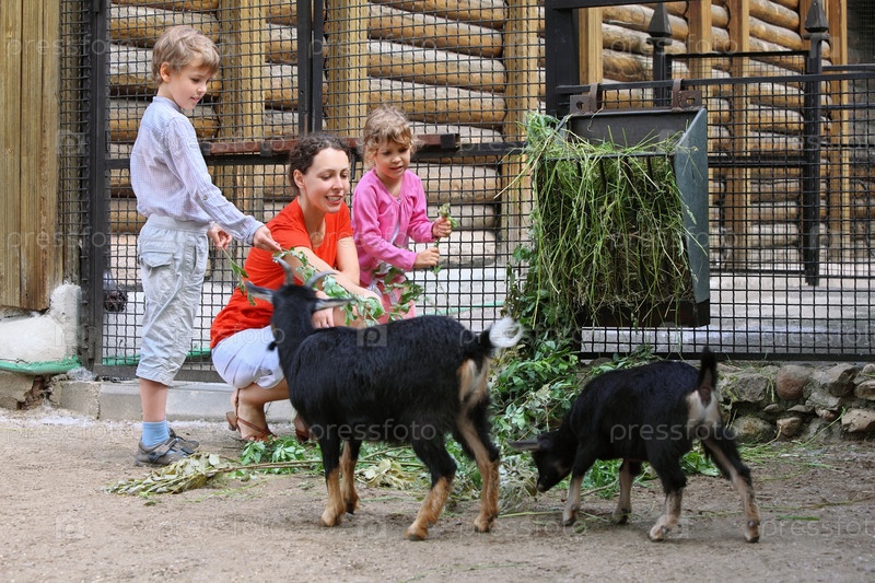 Мать, сын и дочь питаются ветвями горных коз в