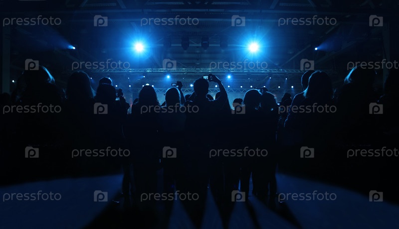 Толпа зрителей с камерами развлекается на вечеринке; спины и