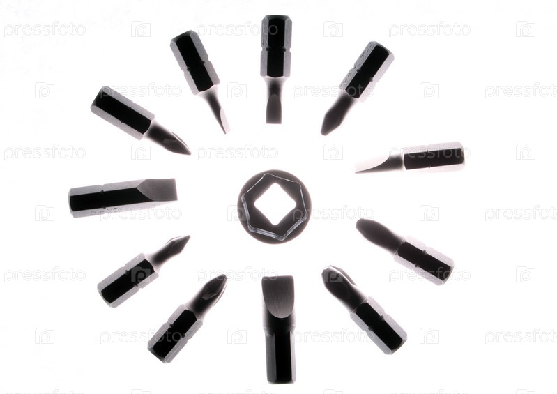 Насадки для отвертки на белом фоне