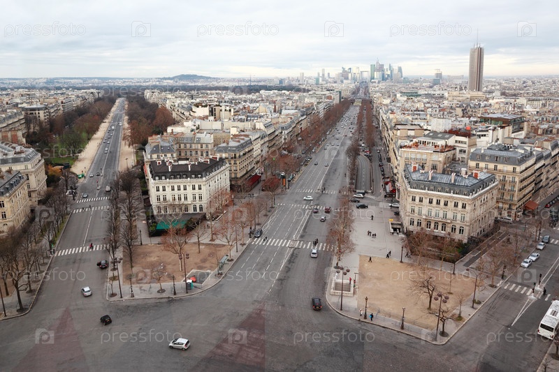 Вид из Триумфальной арки на Булонском лесу и обороне в Париже, Франция