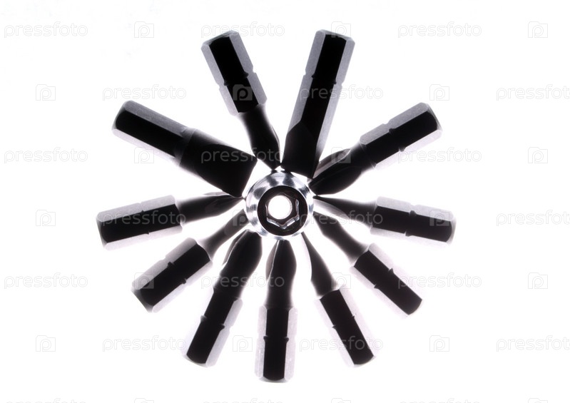 Несколько насадок для отвертки на белом фоне