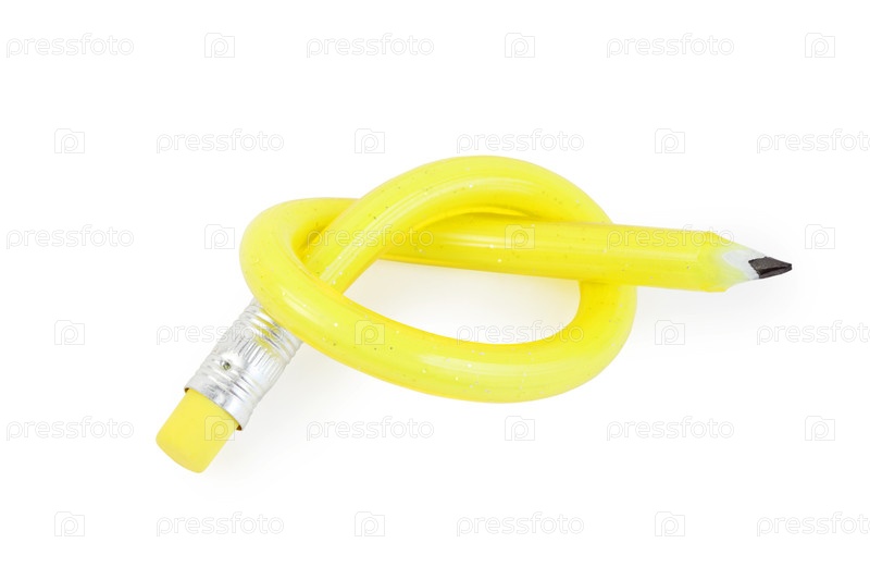 Гибкий желтый карандаш с полосками на белом фоне, связанный