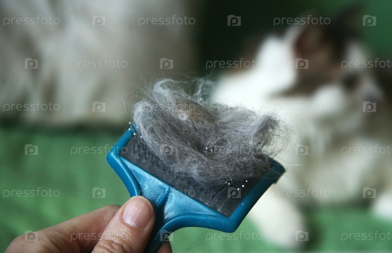 Рука с расческой для животных с шерстью крупным планом