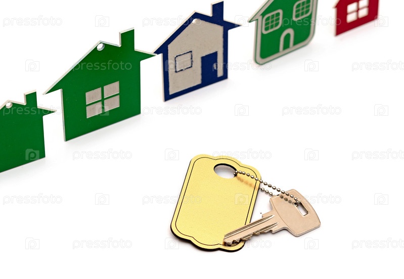 Модели домов и ключ с пустым брелоком
