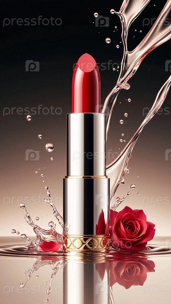Красная помада на контрастном фоне, крупным планом. Реклама помады